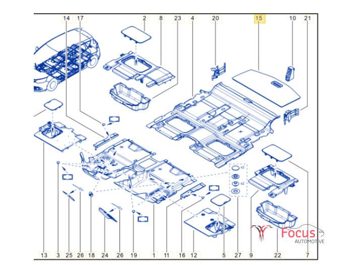 Harde dikke vloerplaat tbv afdekking reservewiel / gereedschap.
