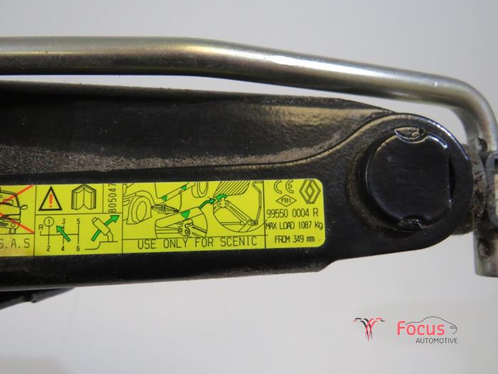 Krikset bestaande uit : houder + krik + wielsleutel + sleepoog.